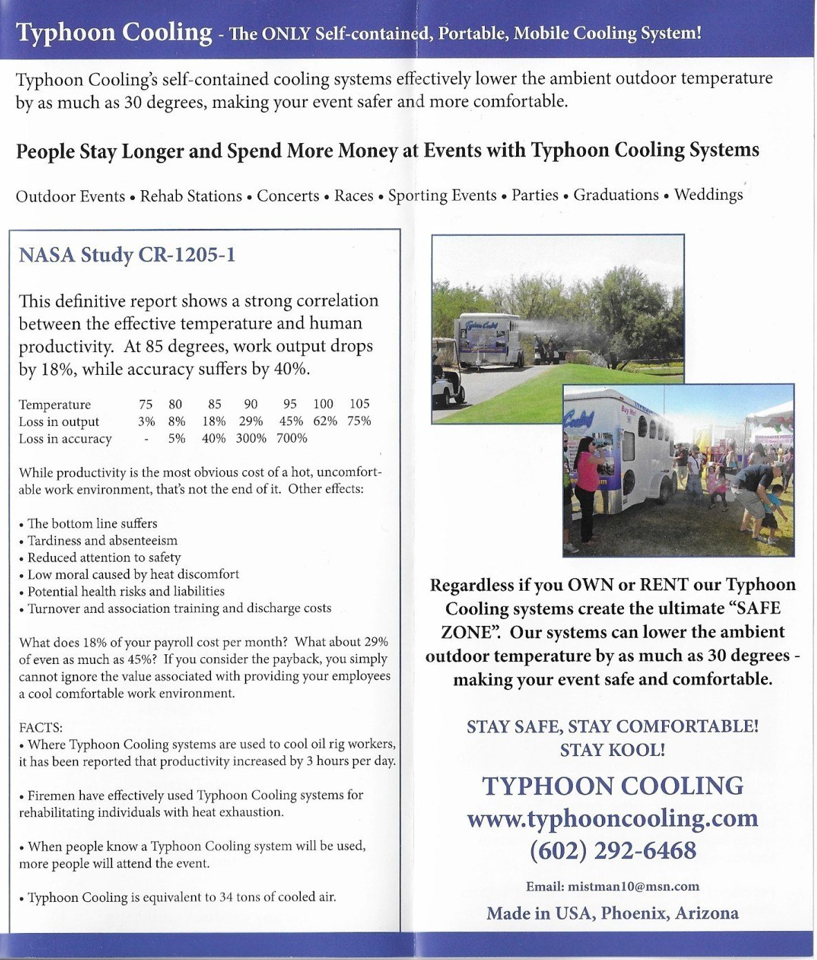 For all of your Phoenix, Arizona misting system rental needs, look no further than Typhoon Cooling LLC. We are proud to be the premier provider of mobile misting services that our community trusts to keep them cool all summer long, and we strive to exceed all expectations with our top of the line equipment.